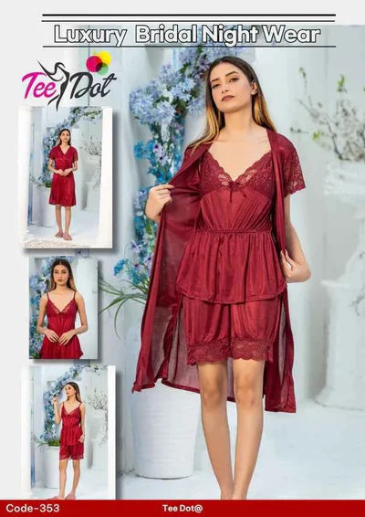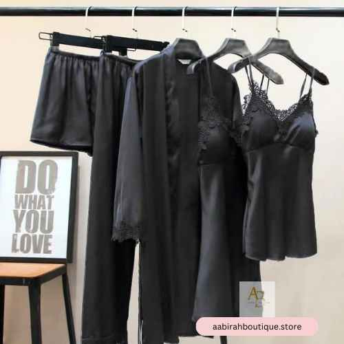 Transitioning into nightwear doesn’t have to be a mundane task. With the 5pcs nighty, you can turn your bedtime routine into a delightful experience. Slip into something more comfortable and adorn yourself with the luxury of silk. Explore our 5pcs nighty collection today, and discover a new level of comfort and style! Whether you're snuggling up with a good book, sipping a warm cup of tea, or enjoying a peaceful night's sleep, these nighties will ensure that you do so in style.